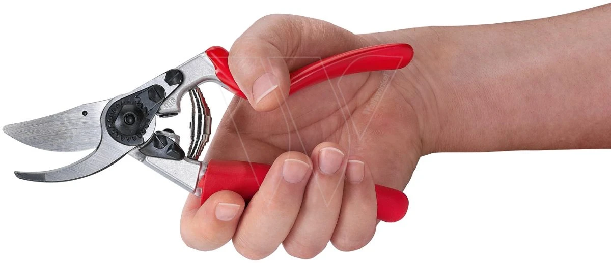 De rolhandgreep spreidt de drukkracht over de vijf vingers en vermindert de krachtinspanning voor het knippen met 30%. Dit vernieuwende concept van FELCO voorkomt peesontstekingen en ontstekingen van de handwortelbeentjes.