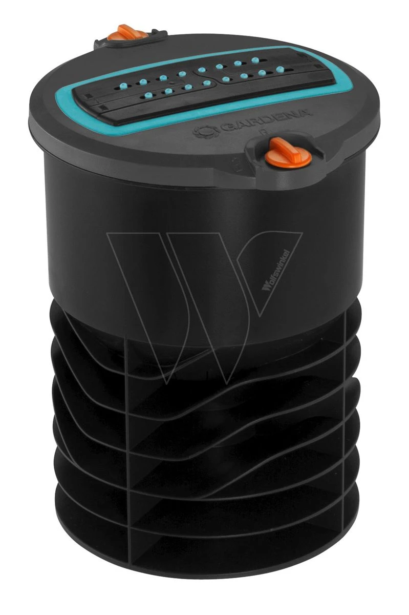 Het kan worden toegevoegd aan het Gardena Sprinklersysteem met aanvoerbuizen en gebruikt worden in combinatie met de Gardena verzonken turbinesproeier T 100, T 200 of T 380.