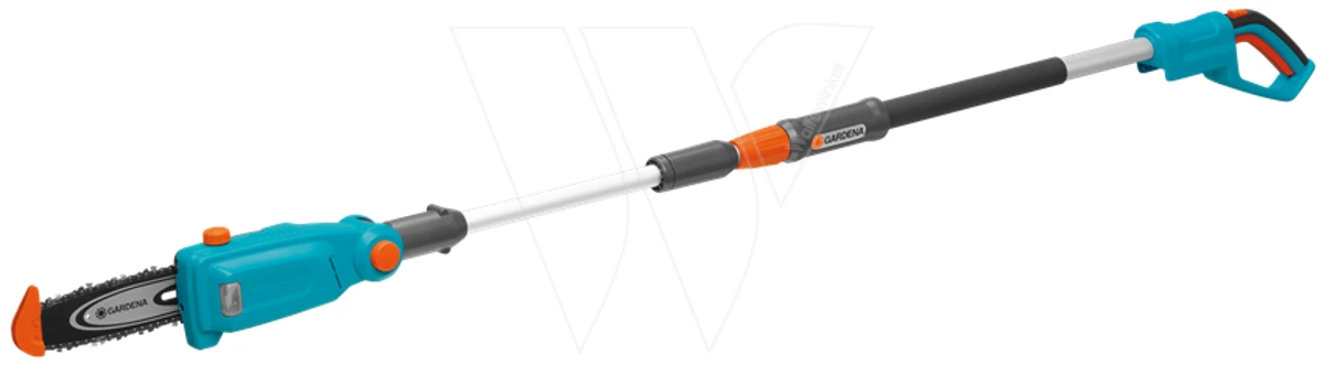 Telescopisch tot 2,5 m om makkelijk te snoeien tot 4 m hoog (gebruiker inbegrepen). Snoeikop draaibaar 90° om takken precies in de gewenste richting af te zagen. Krachtig snoeien van takken tot 8 cm diam. Licht en makkelijk in gebruik. Nauwe snoeikop om moeilijk bereikbare plaatsten te bereiken. Exclusief Li-Ion wisselaccu BLi-18, kan gebruikt worden voor andere GARDENA accuproducten. Vermogen: 18 V / 2,0 Ah. Zaagbladlengte: 20 cm. Kettingsnelheid: 3,8 m/sec. Kettingsteek: 3/8″. 4-kleuren displaydoos.